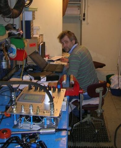 Started development of a portable electronic version, the first prototype built in a wooden case focused on force measurement only.